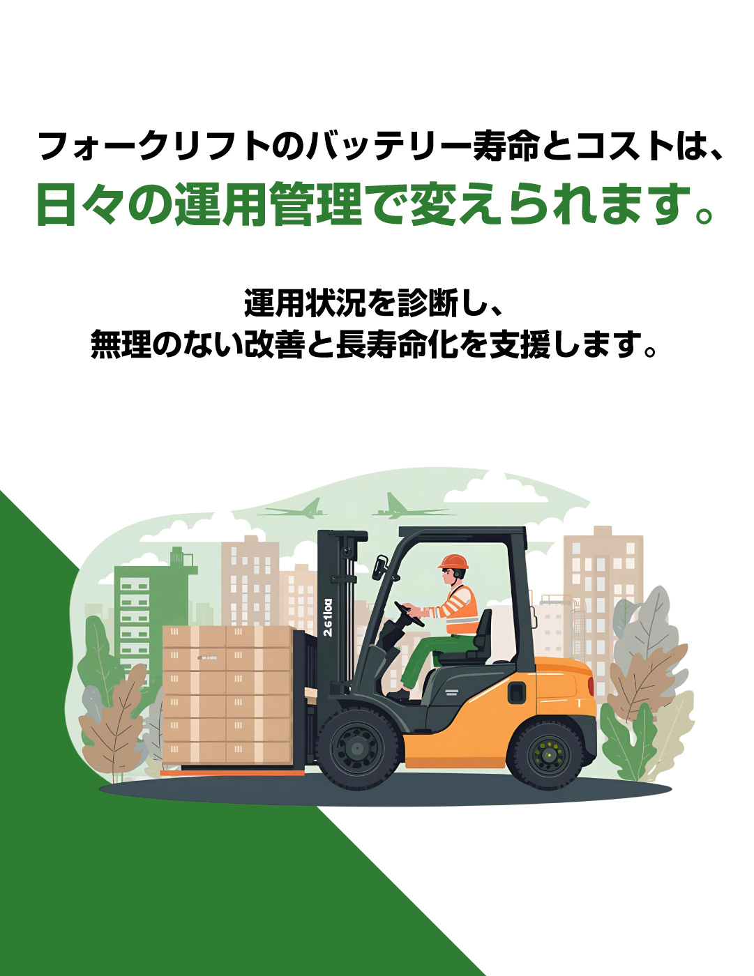 バッテリーの寿命は「フォークリフトの運用方法」で変わります