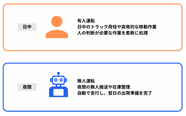 • 夜間は無人運転で自動搬送