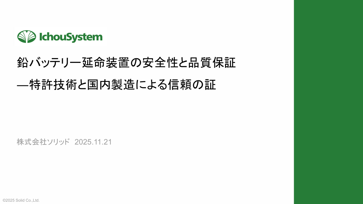 資料ダウンロード 鉛バッテリー延命装置の安全性と品質保証 バッテリー延命サービス「IchouSystem」にご興味いただき誠にありがとうございます。 こんな方におすすめです フォークリフトを管理する製造業・物流業の法人様 設備投資やメンテナンスコストの最適化を検討されている管理職の方 品質・安全性を重視し、信頼できる製品選定を求めるご担当者様 お名前 必須 会社名 必須 メールアドレス 必須 電話番号 必須 個人情報は、プライバシーポリシーに基づき厳重に管理いたします。